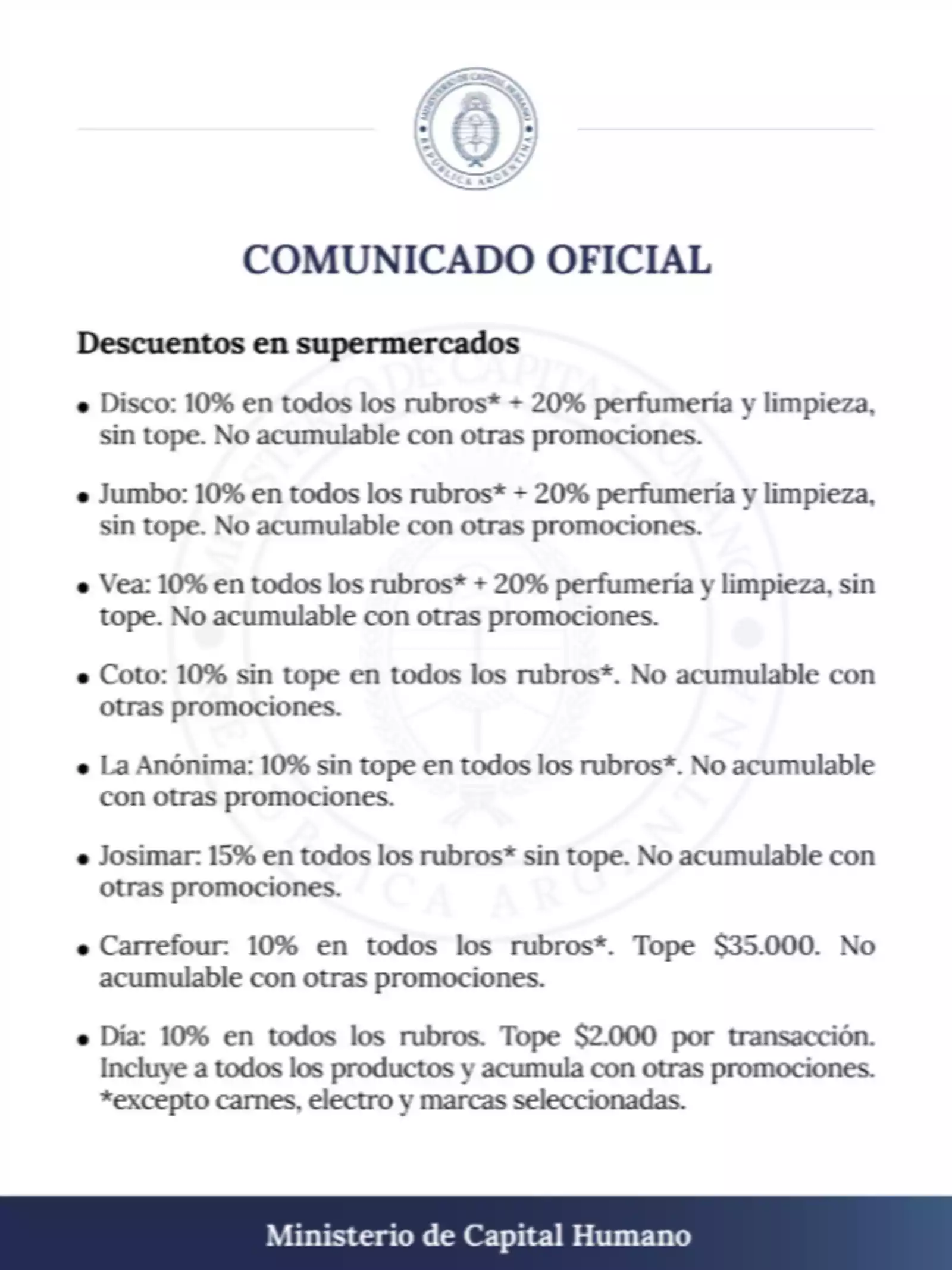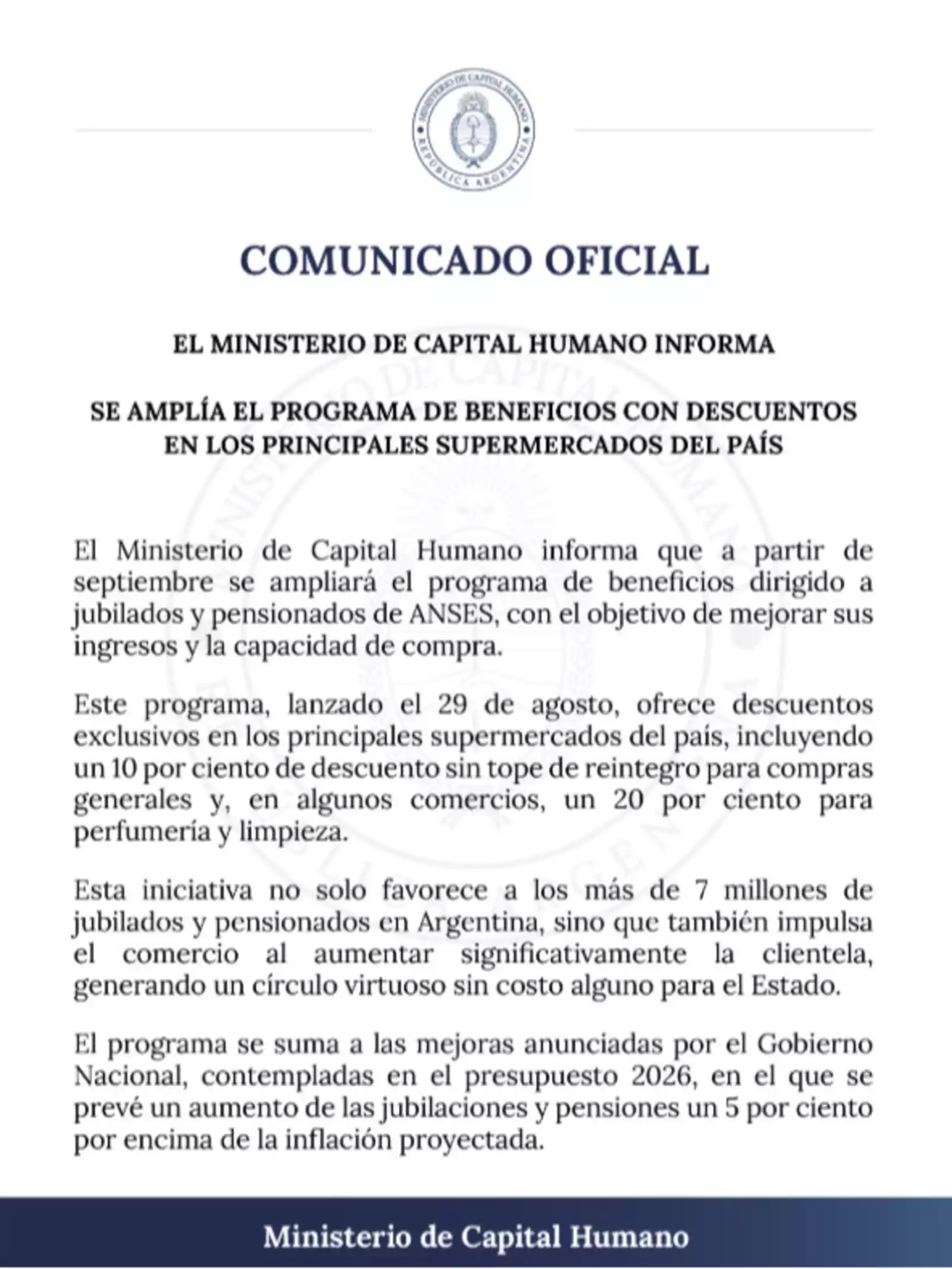 Si querés conocer todos los detalles de cómo acceder a los descuentos y qué cadenas participan, seguí atento a la información oficial del Ministerio de Capital Humano, porque este programa puede cambiar la forma en que tus compras te impactan el bolsillo.